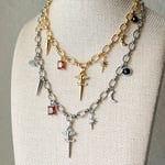 An 18” gold plated/silver plated figaro chain decorated with 7 gold plated/silver plated and a 2” chain extender.