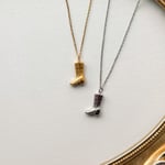 An 18” stainless steel chain decorated with a stainless steel boot pendant.