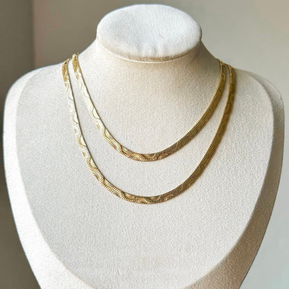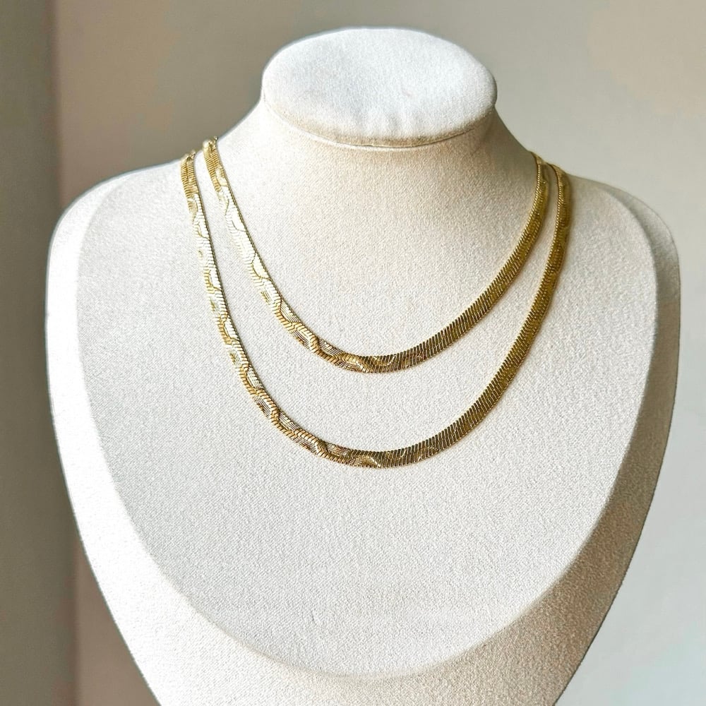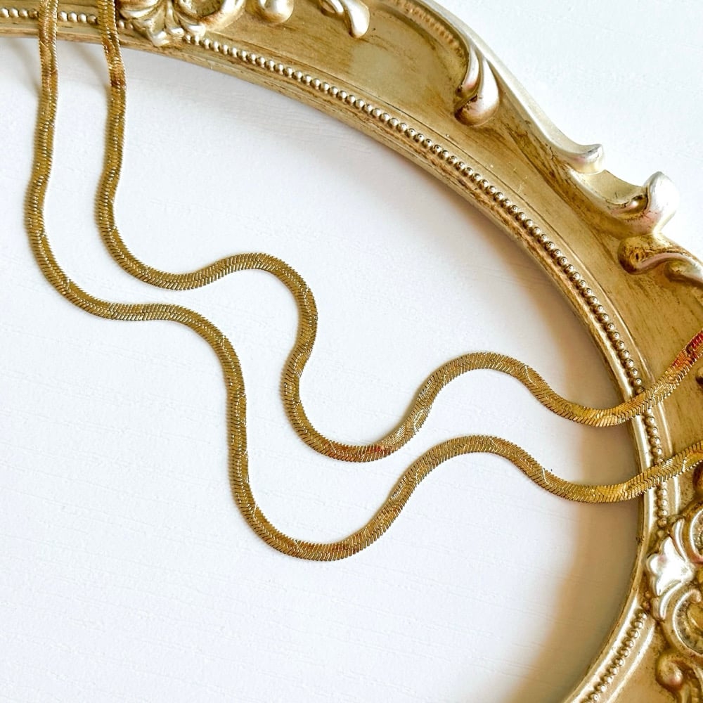 A stainless steel textured snake chain measuring 16.5” with a 2.5” chain extender.