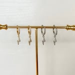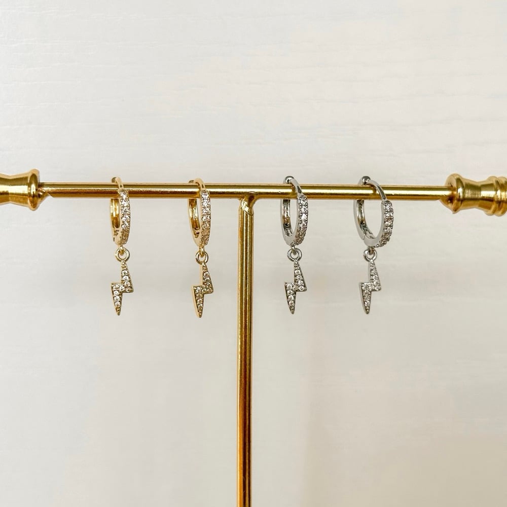 Gold/Silver plated cubic zirconia huggie earrings with cubic zirconia lightening charms.