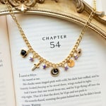 An 18” gold plated 8mm curb chain decorated with a mix of gold plated and stainless steel charms all inspired by our favorite high lord. The chain also has a 2” chain extender.