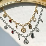 An 18” gold plated/silver plated 6.5mm figaro chain decorated with 7 TOG inspired charms. All charms and hardware are gold plated/silver plated as well.