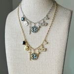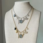 An 18” stainless steel chain with a 2” chain extender, decorated with 7 gold plated/silver plated charms.